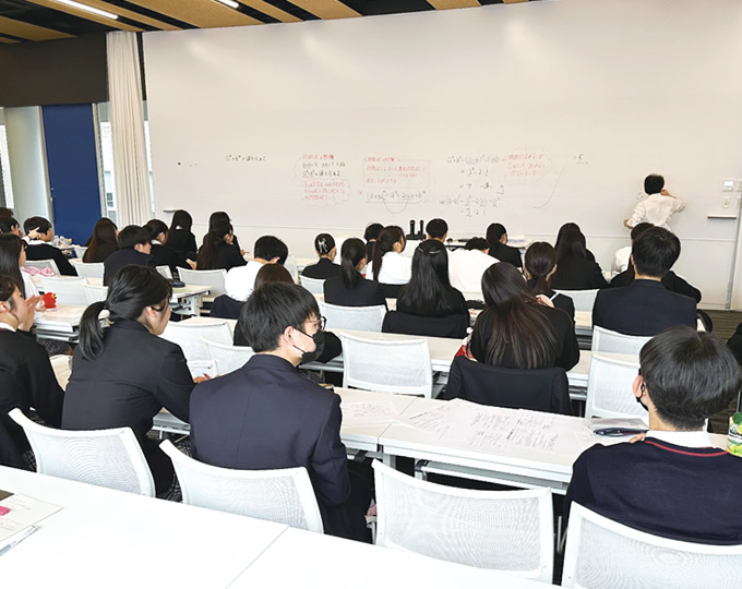 - 大手予備校の講師を招いて講義を実施。学校で、無料で、ハイレベルな授業を受けることができます。